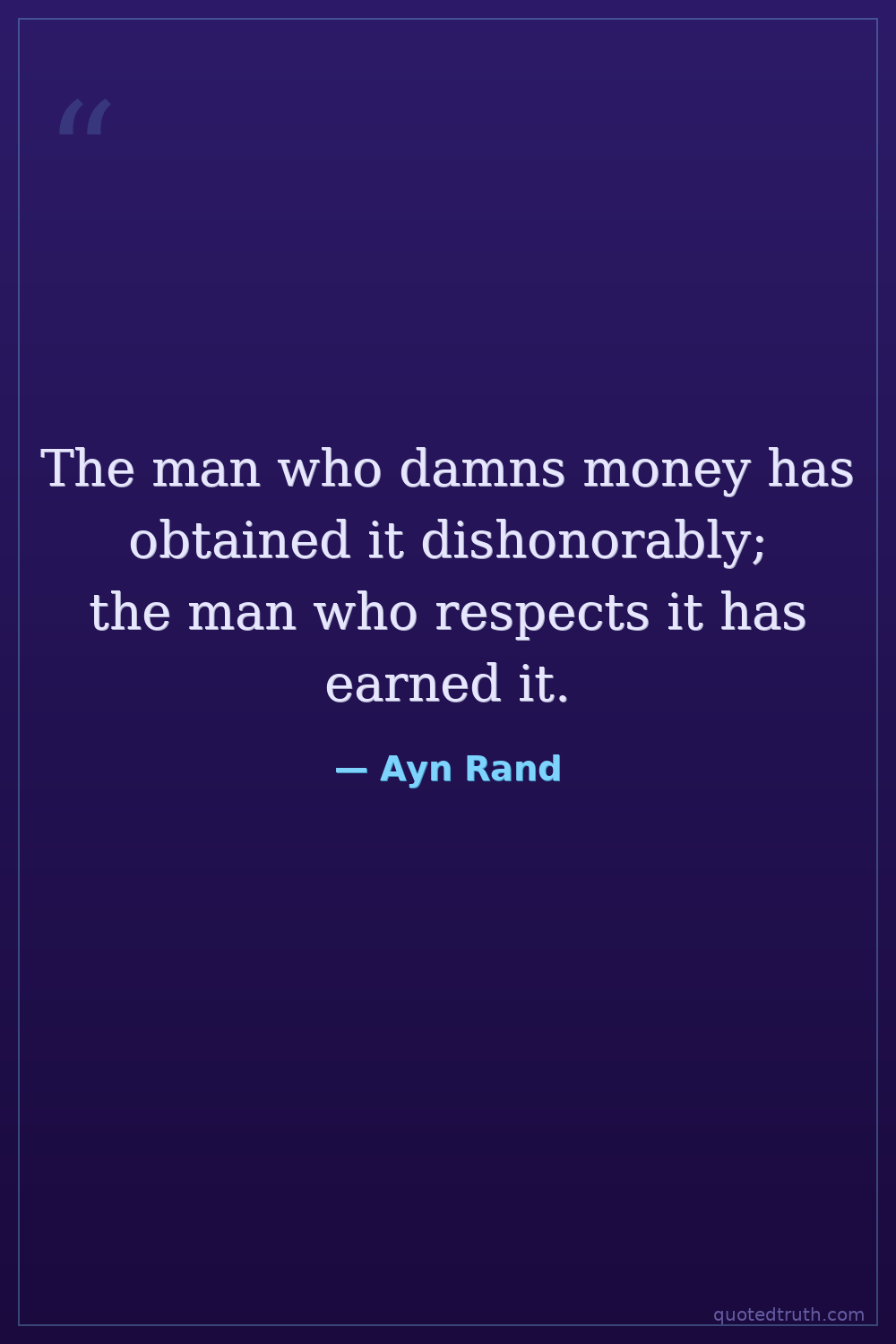 The man who damns money has obtained it dishonorably; the man who respects it has earned it.