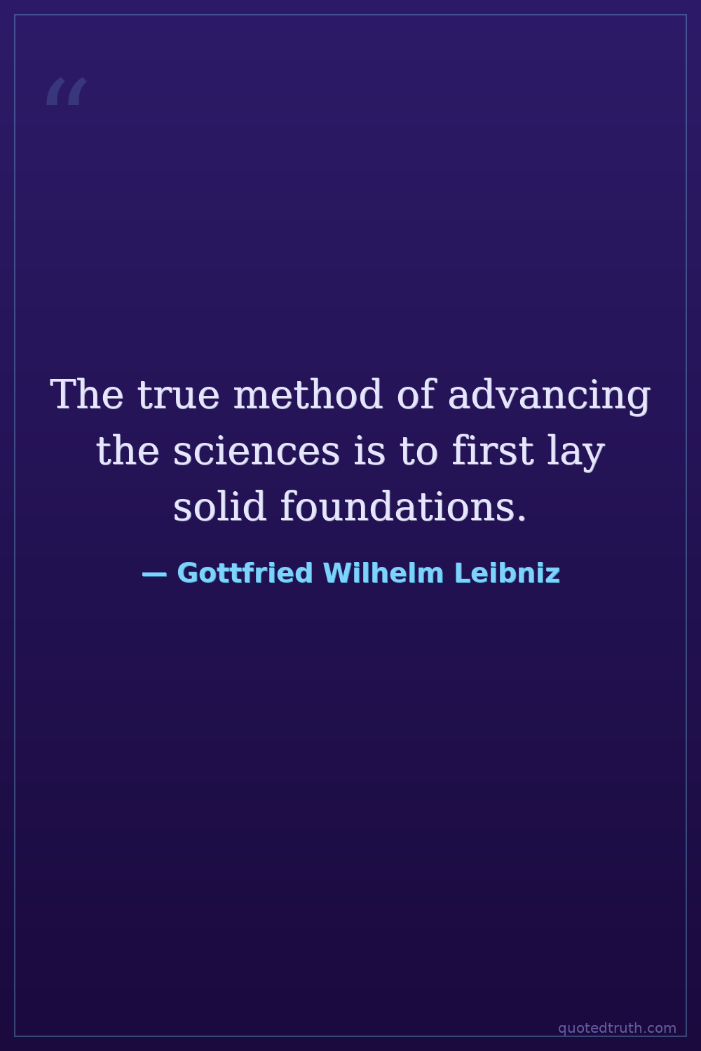 The true method of advancing the sciences is to first lay solid foundations.