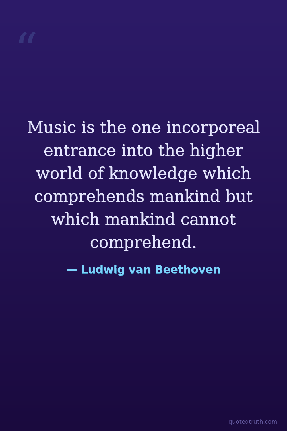 Music is the one incorporeal entrance into the higher world of knowledge which comprehends mankind but which mankind cannot comprehend.