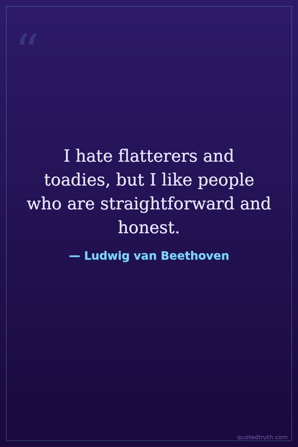 I hate flatterers and toadies, but I like people who are straightforward and honest.
