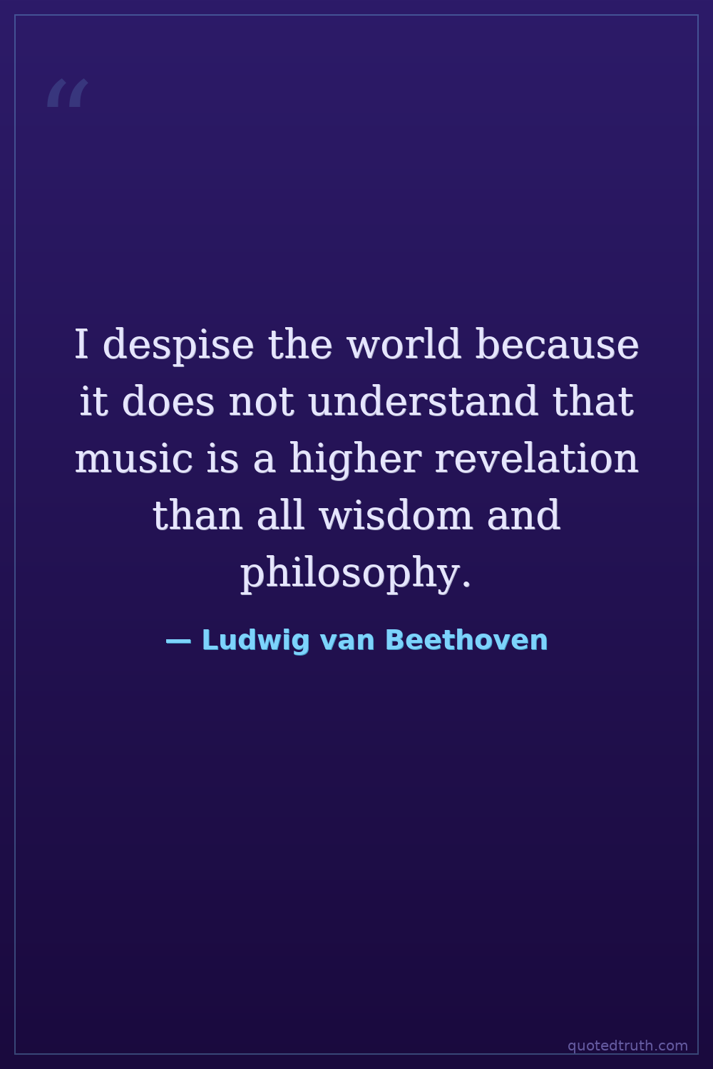 I despise the world because it does not understand that music is a higher revelation than all wisdom and philosophy.