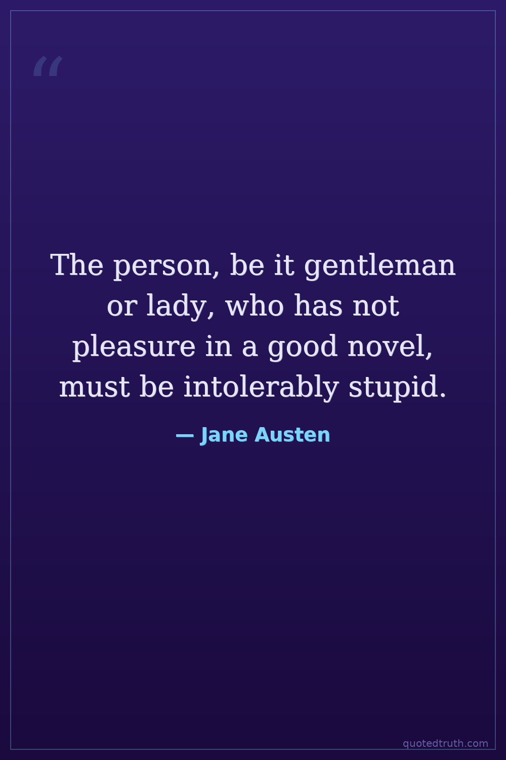 The person, be it gentleman or lady, who has not pleasure in a good novel, must be intolerably stupid.