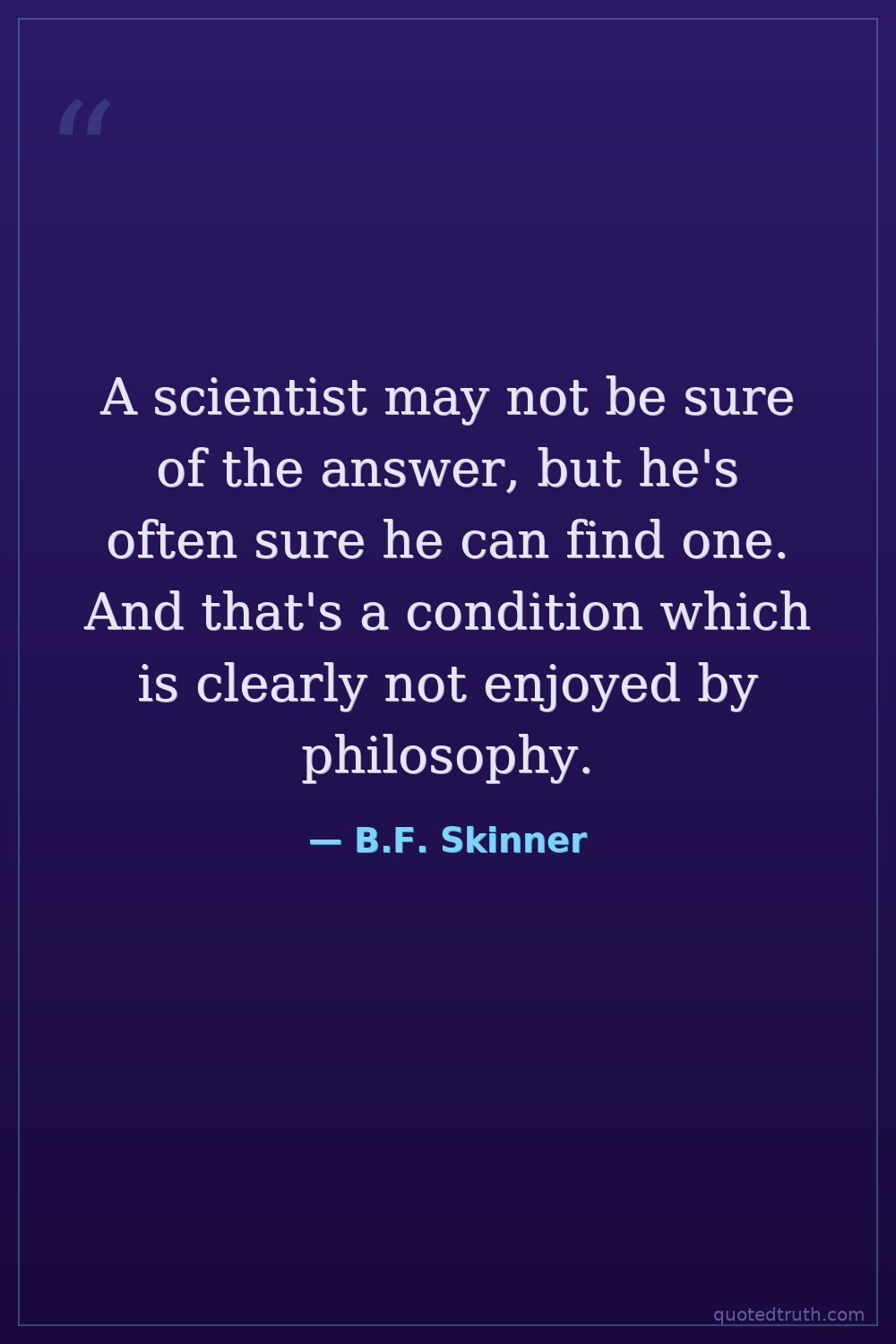 A scientist may not be sure of the answer, but he's often sure he can find one. And that's a condition which is clearly not enjoyed by philosophy.