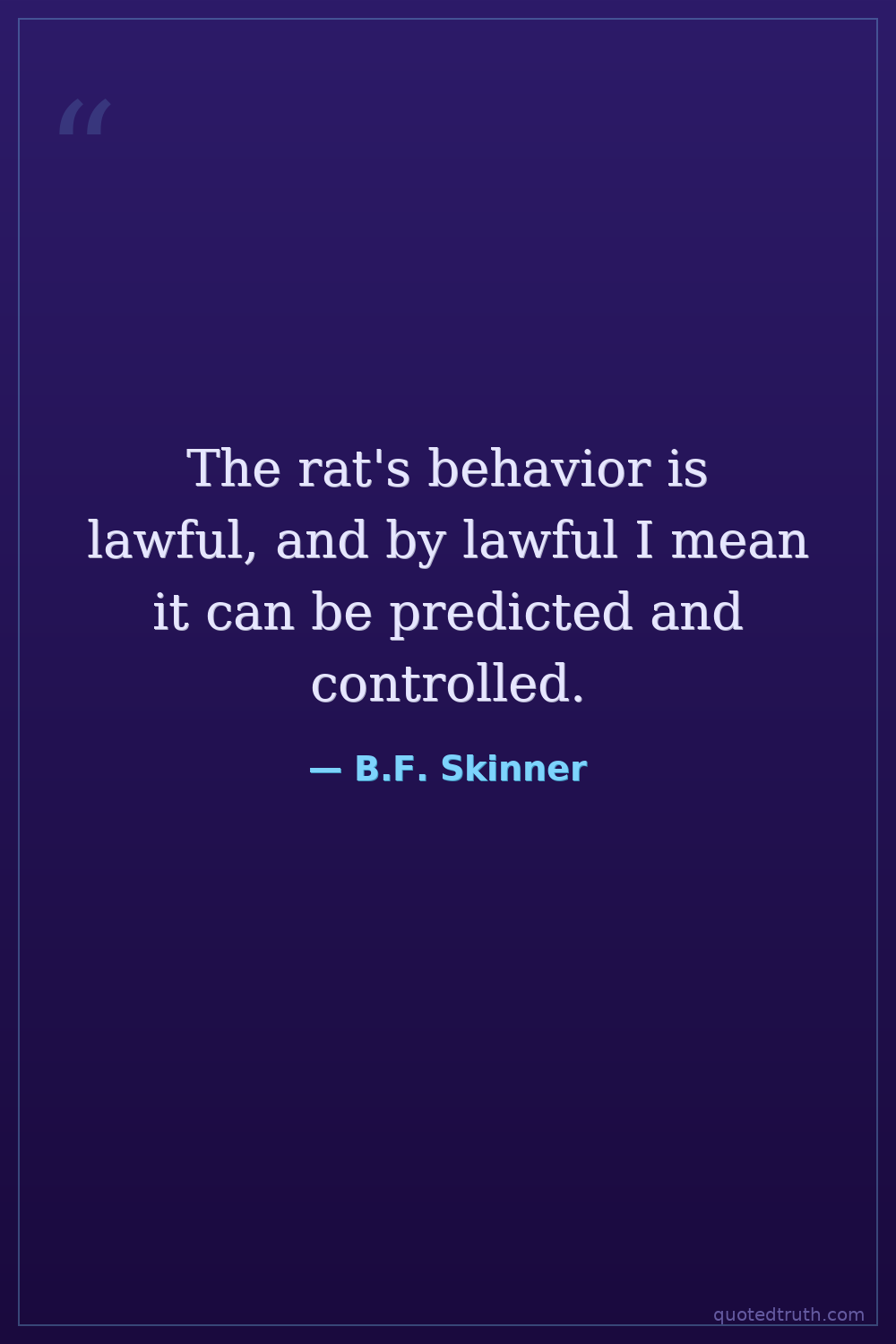 The rat's behavior is lawful, and by lawful I mean it can be predicted and controlled.