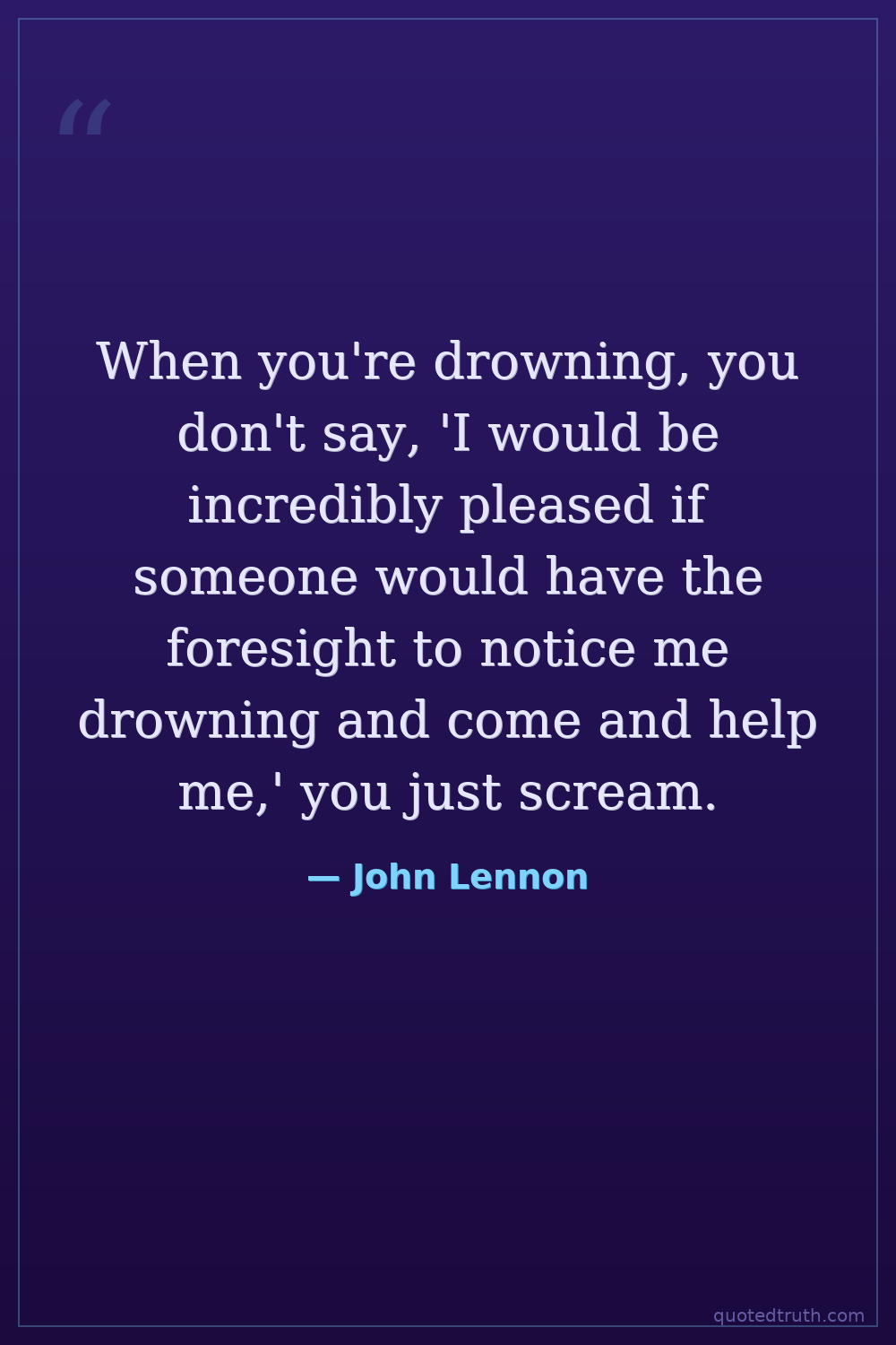 When you're drowning, you don't say, 'I would be incredibly pleased if someone would have the foresight to notice me drowning and come and help me,' you just scream.