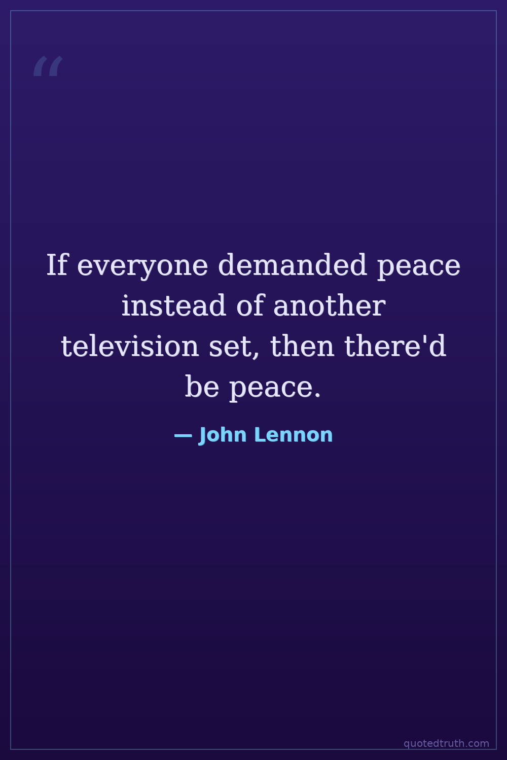 If everyone demanded peace instead of another television set, then there'd be peace.
