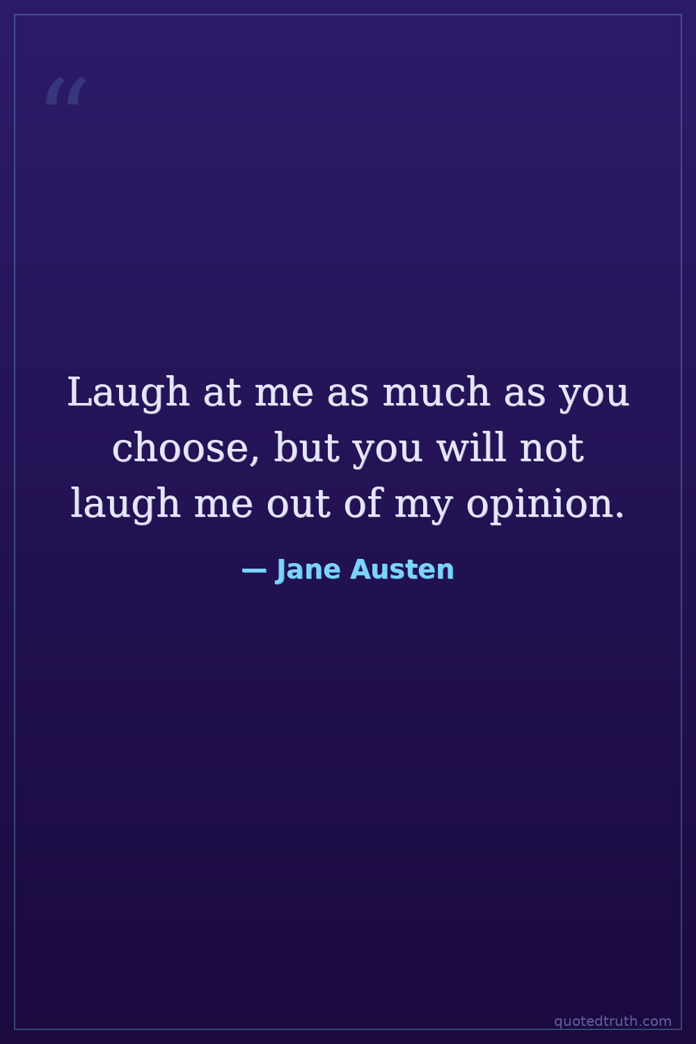 Laugh at me as much as you choose, but you will not laugh me out of my opinion.