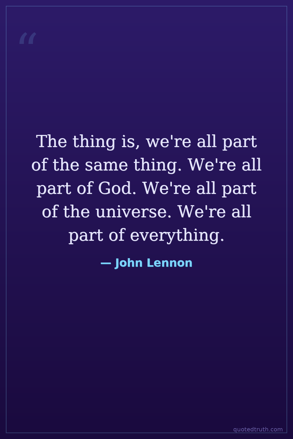 The thing is, we're all part of the same thing. We're all part of God. We're all part of the universe. We're all part of everything.