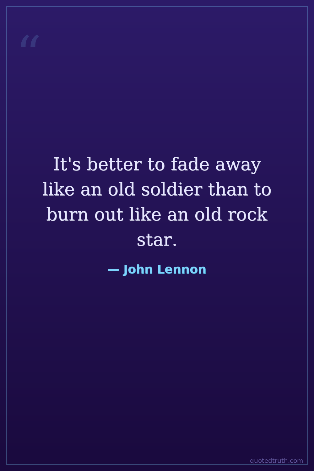 It's better to fade away like an old soldier than to burn out like an old rock star.