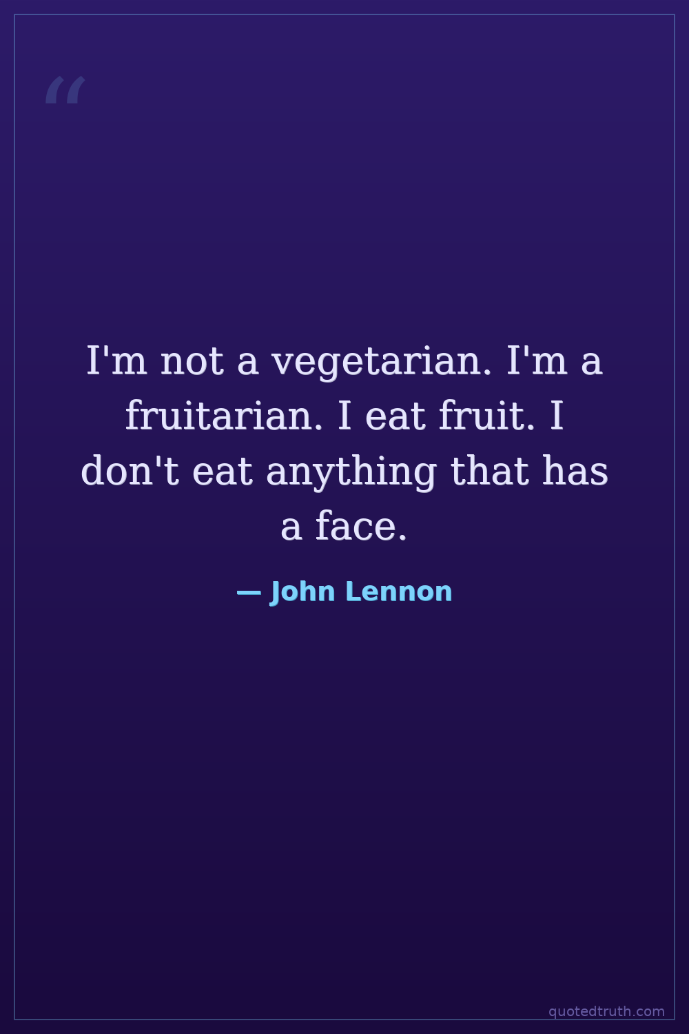 I'm not a vegetarian. I'm a fruitarian. I eat fruit. I don't eat anything that has a face.