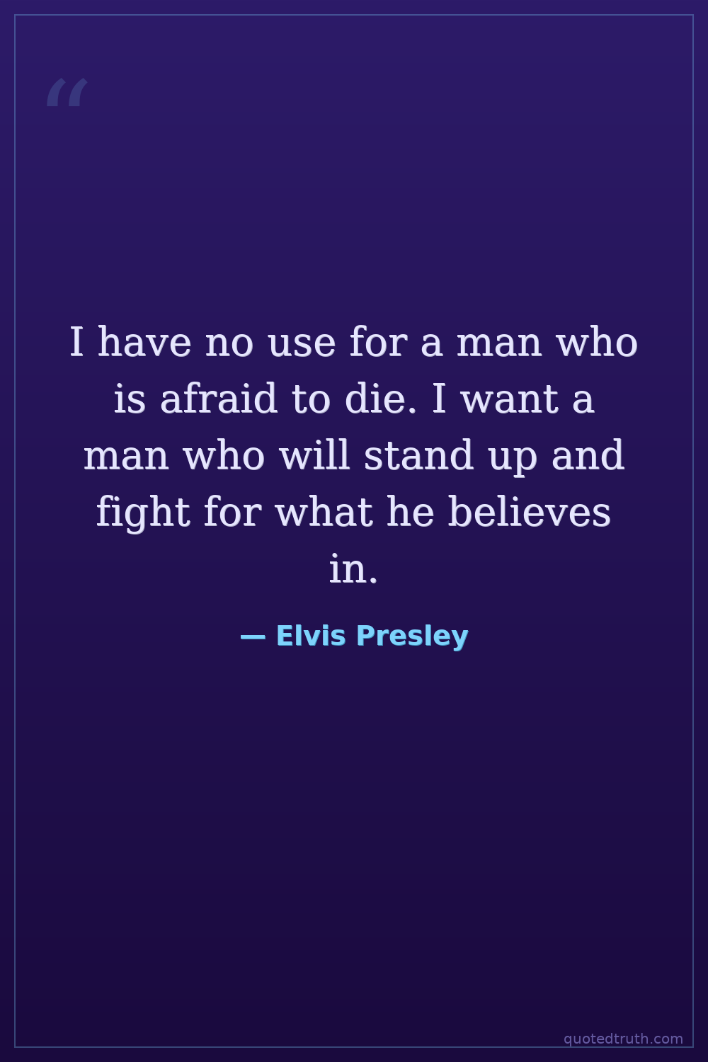 I have no use for a man who is afraid to die. I want a man who will stand up and fight for what he believes in.