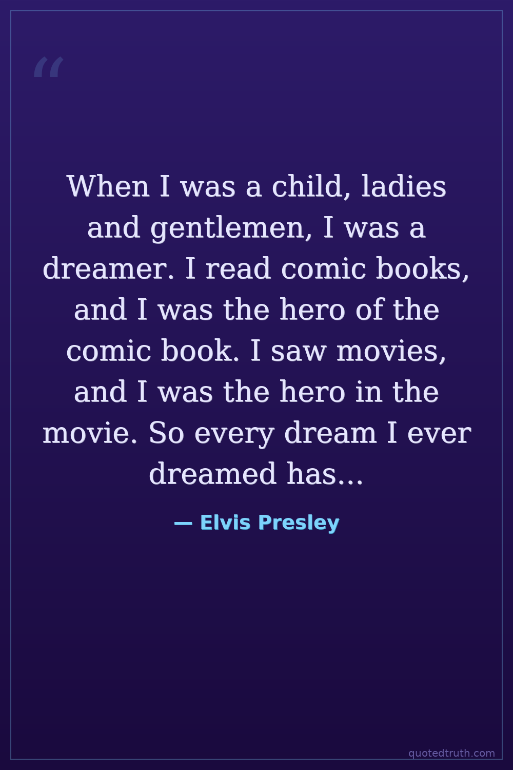 When I was a child, ladies and gentlemen, I was a dreamer. I read comic books, and I was the hero of the comic book. I saw movies, and I was the hero in the movie. So every dream I ever dreamed has come true a thousand times.