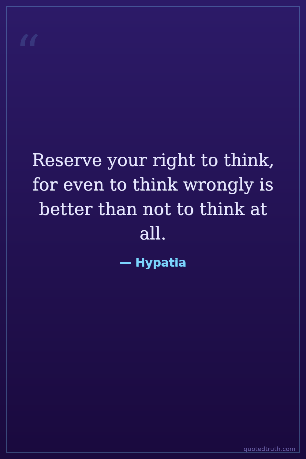 Reserve your right to think, for even to think wrongly is better than not to think at all.