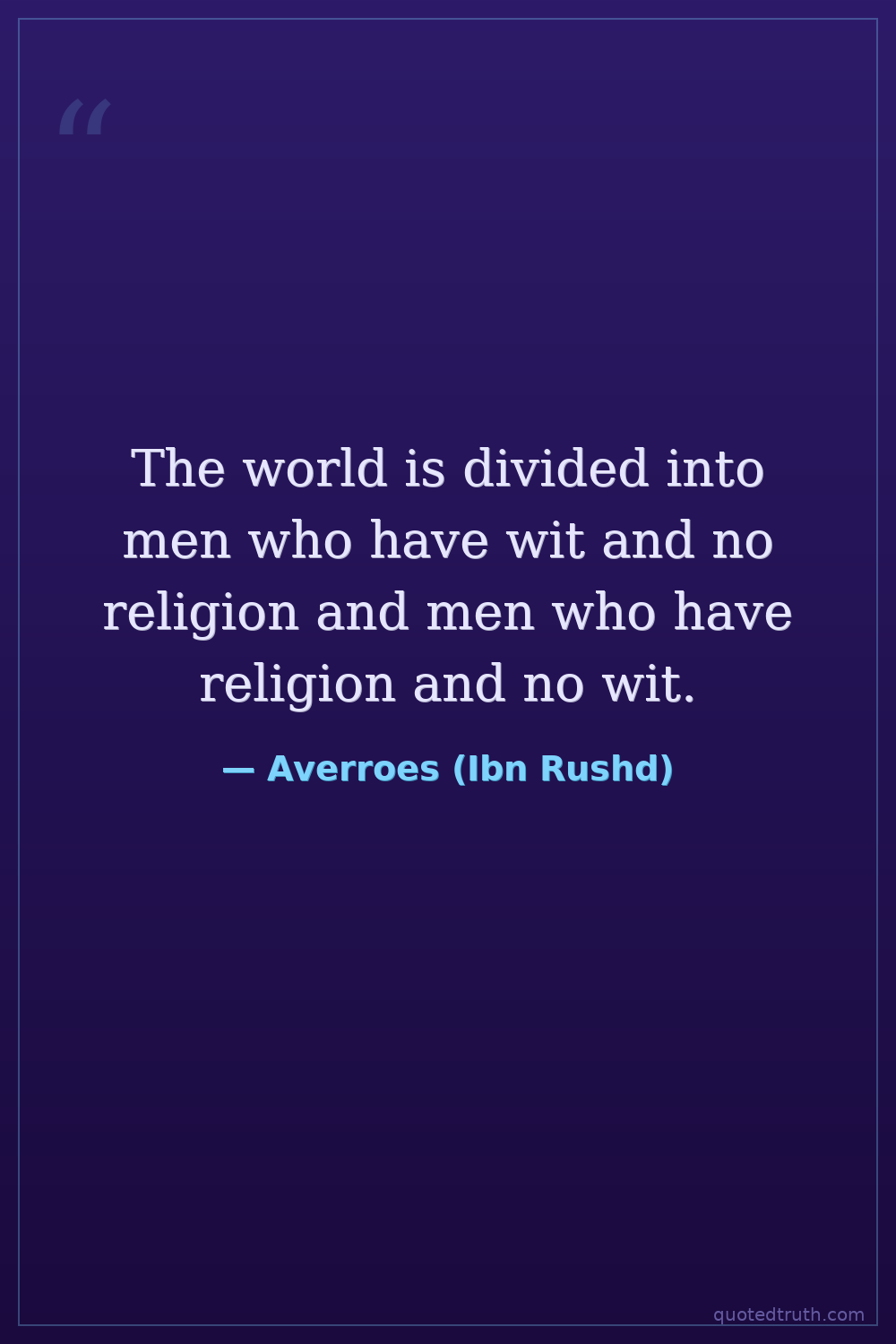 The world is divided into men who have wit and no religion and men who have religion and no wit.
