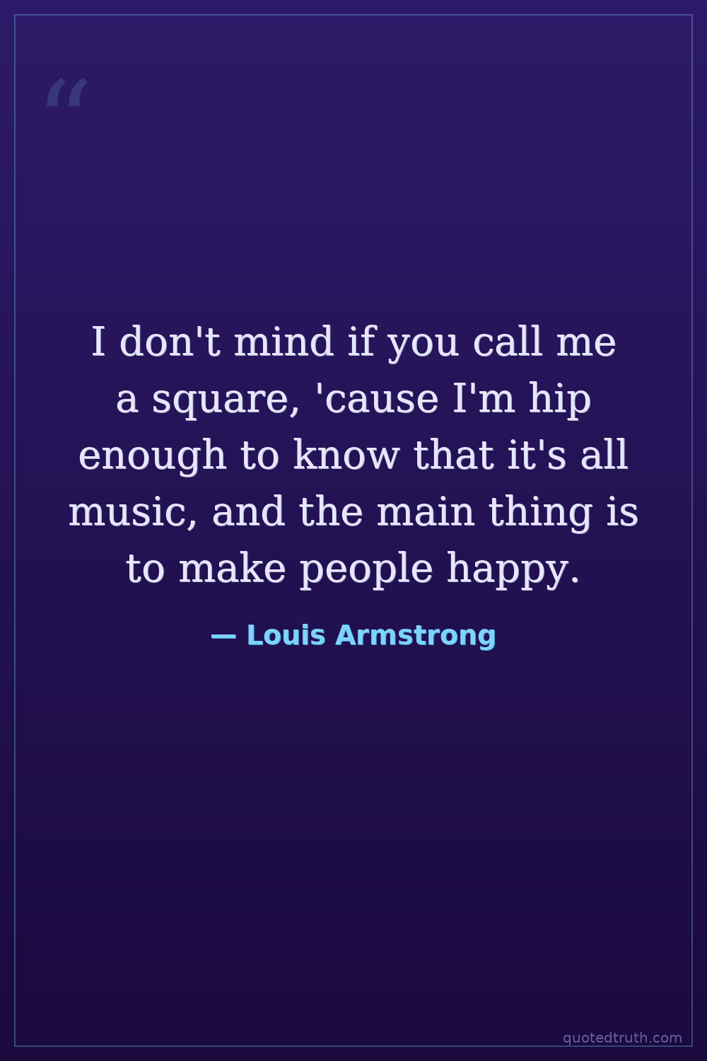 I don't mind if you call me a square, 'cause I'm hip enough to know that it's all music, and the main thing is to make people happy.