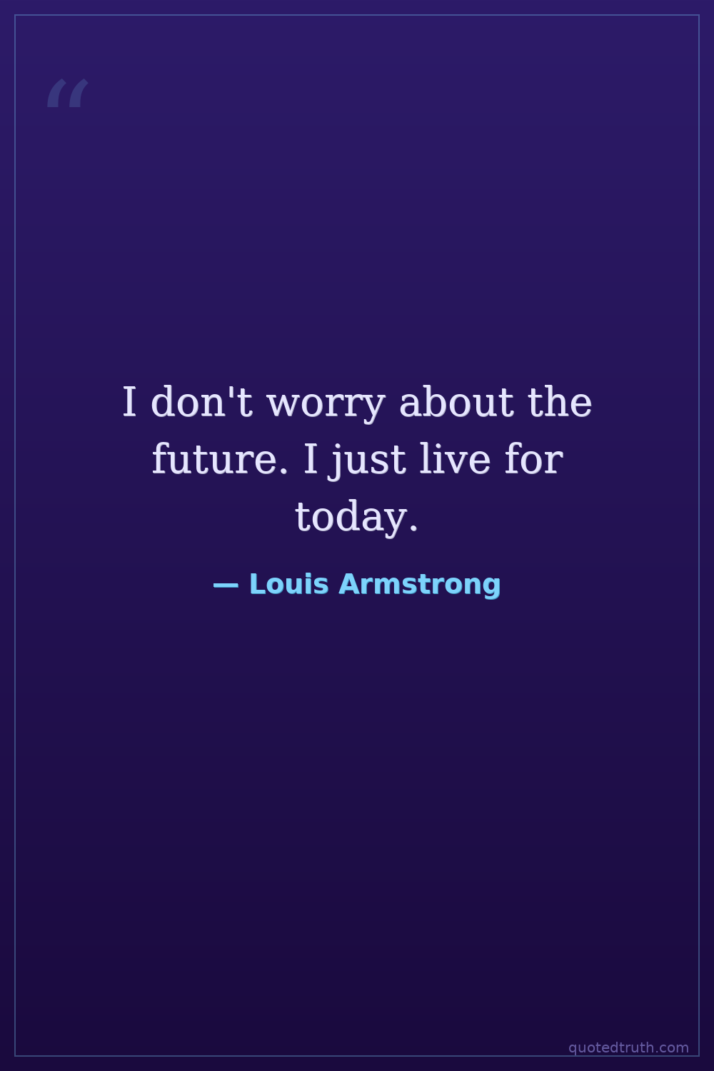 I don't worry about the future. I just live for today.