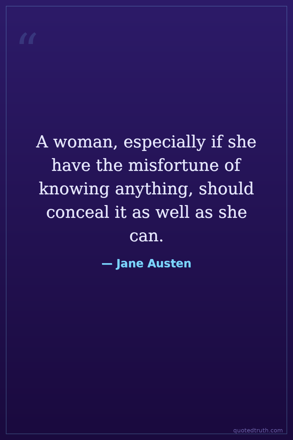 A woman, especially if she have the misfortune of knowing anything, should conceal it as well as she can.