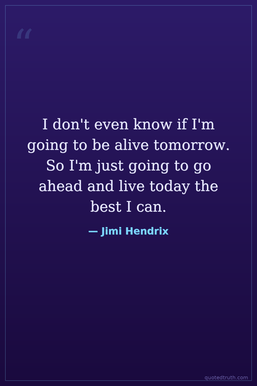 I don't even know if I'm going to be alive tomorrow. So I'm just going to go ahead and live today the best I can.