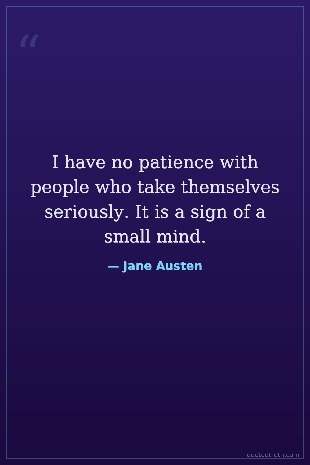I have no patience with people who take themselves seriously. It is a sign of a small mind.