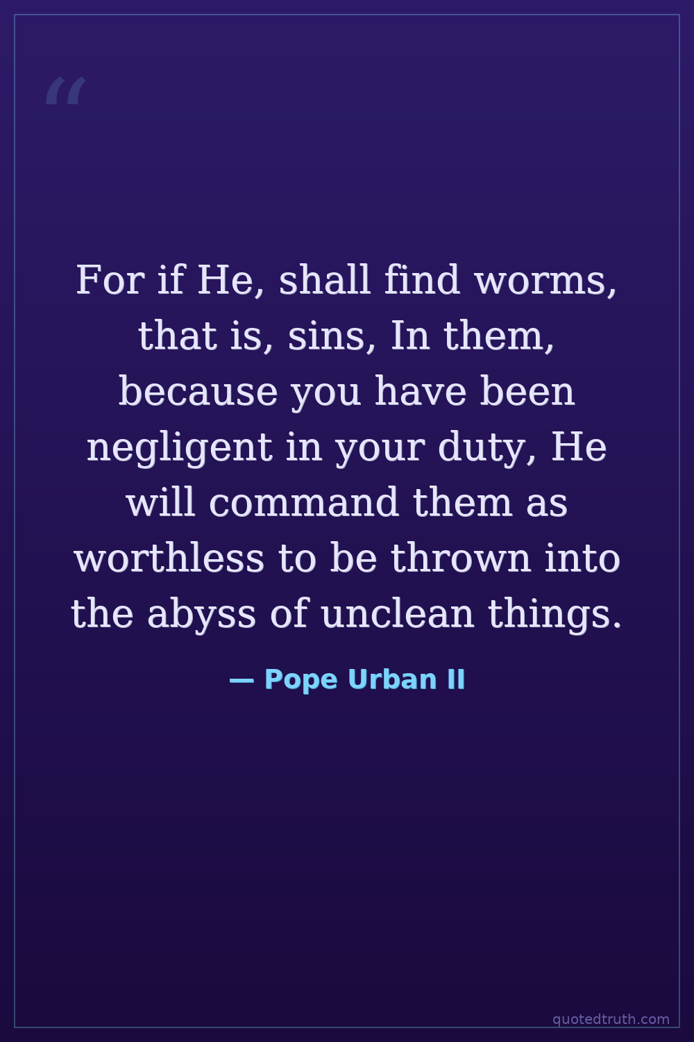 For if He, shall find worms, that is, sins, In them, because you have been negligent in your duty, He will command them as worthless to be thrown into the abyss of unclean things.