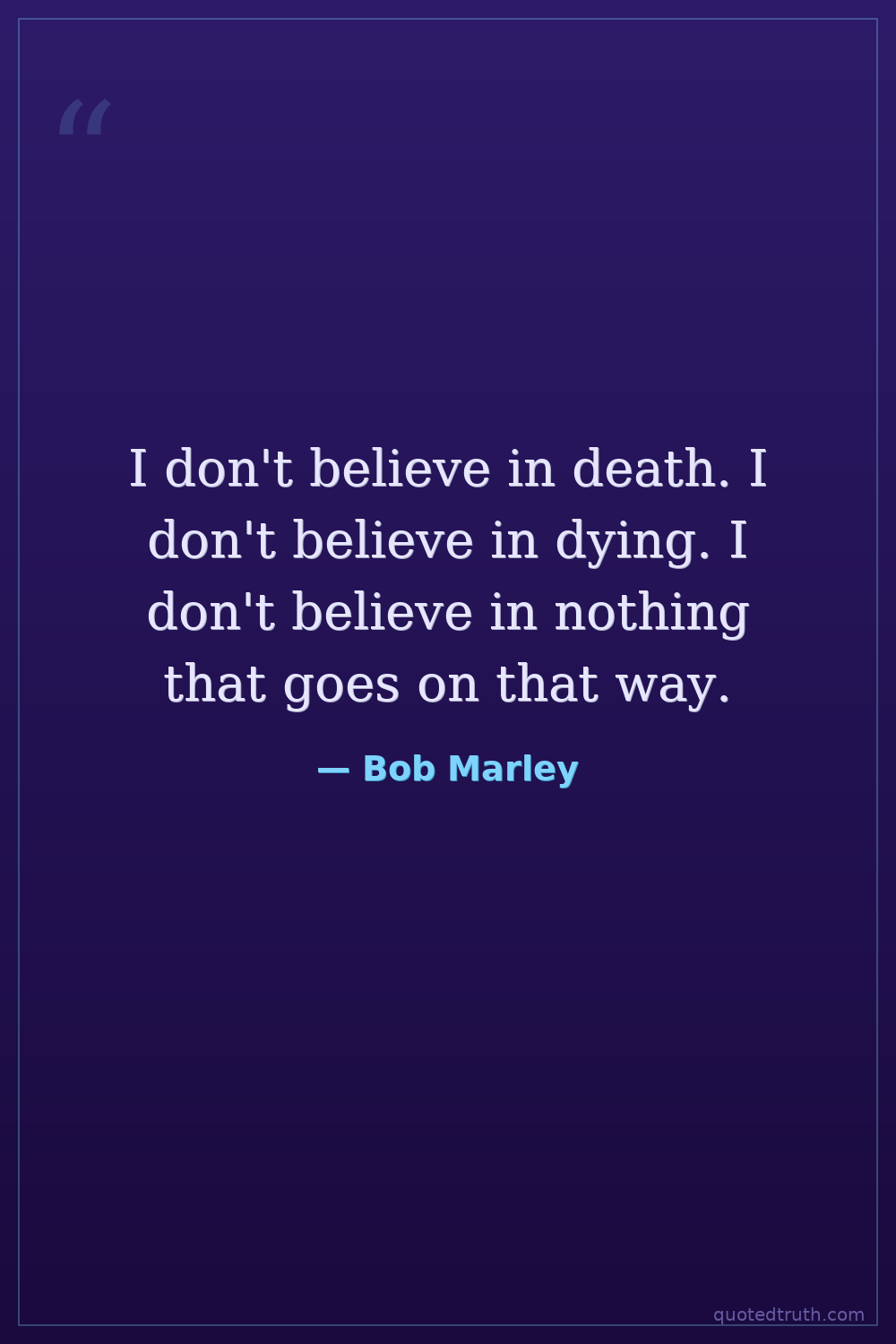 I don't believe in death. I don't believe in dying. I don't believe in nothing that goes on that way.