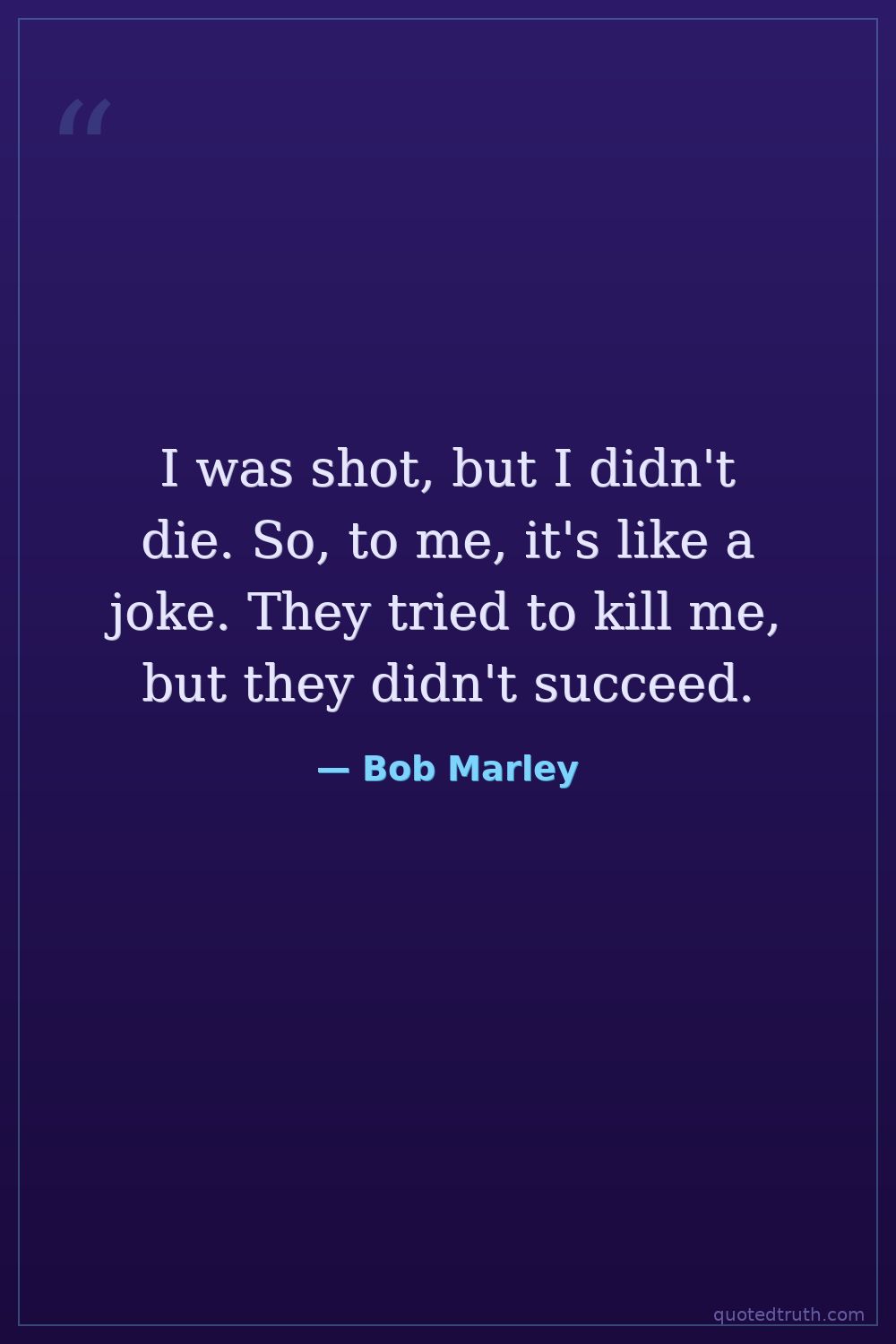 I was shot, but I didn't die. So, to me, it's like a joke. They tried to kill me, but they didn't succeed.