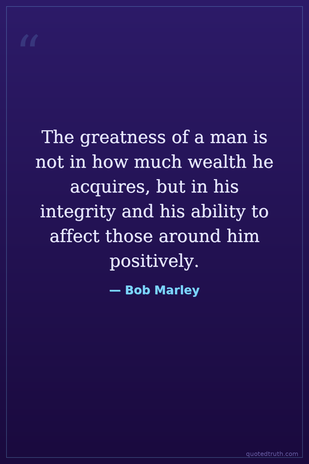 The greatness of a man is not in how much wealth he acquires, but in his integrity and his ability to affect those around him positively.