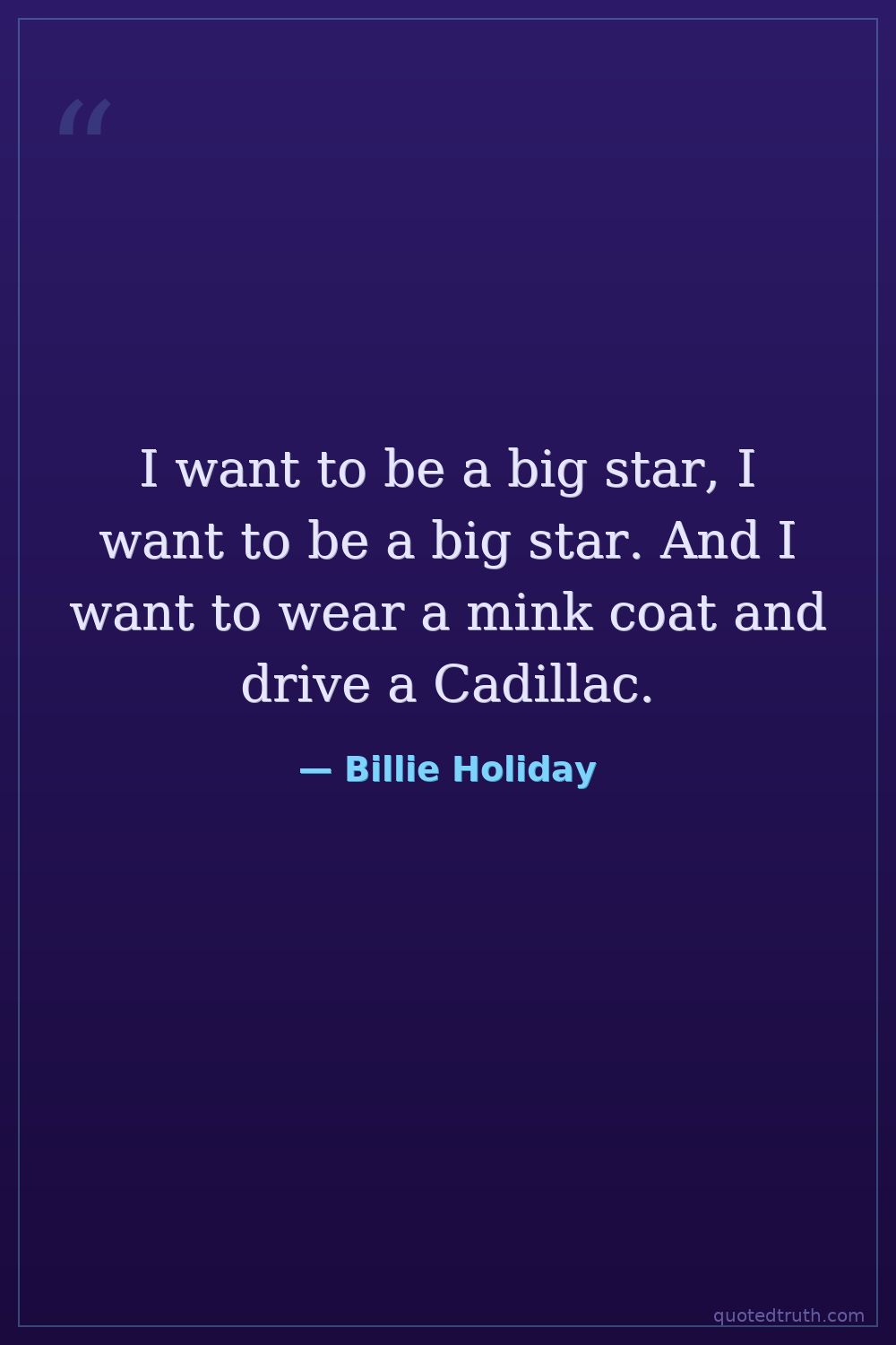 I want to be a big star, I want to be a big star. And I want to wear a mink coat and drive a Cadillac.