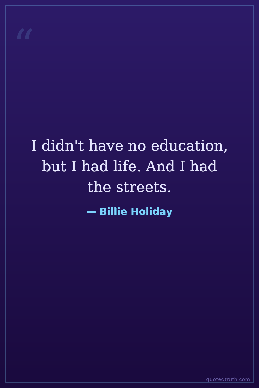 I didn't have no education, but I had life. And I had the streets.
