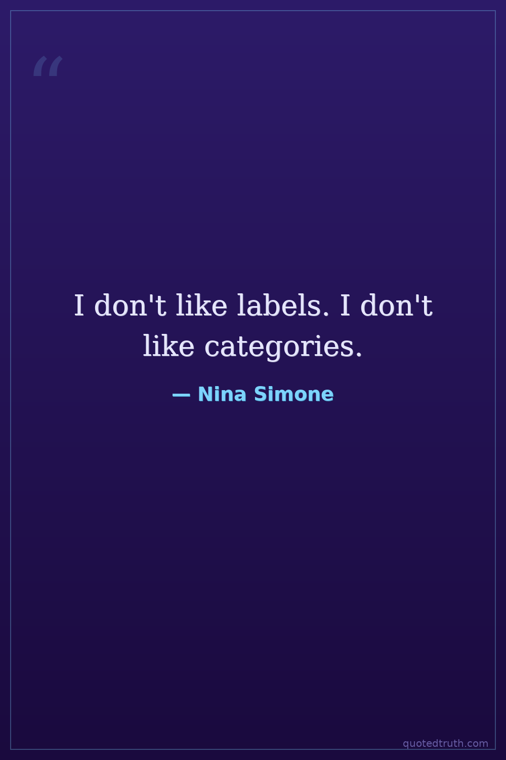 I don't like labels. I don't like categories.