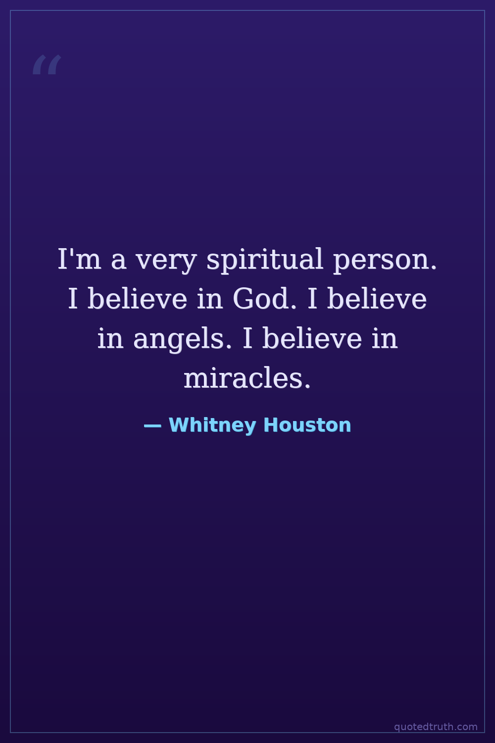 I'm a very spiritual person. I believe in God. I believe in angels. I believe in miracles.