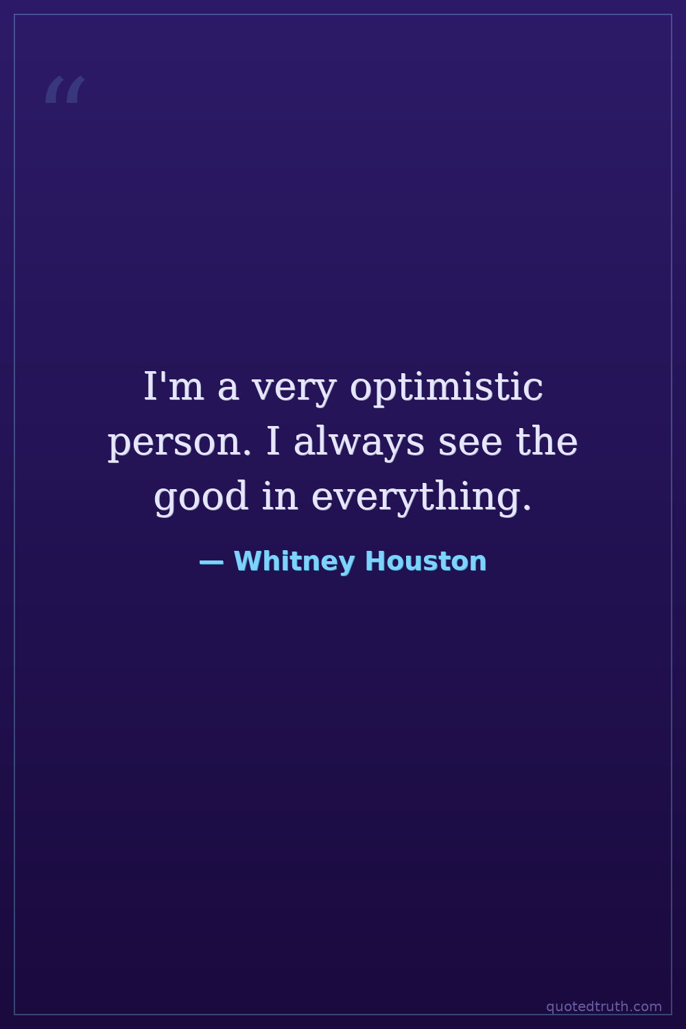 I'm a very optimistic person. I always see the good in everything.