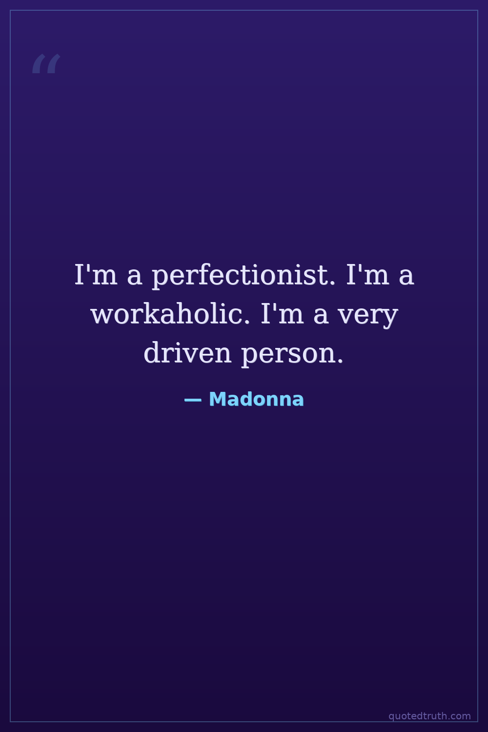 I'm a perfectionist. I'm a workaholic. I'm a very driven person.