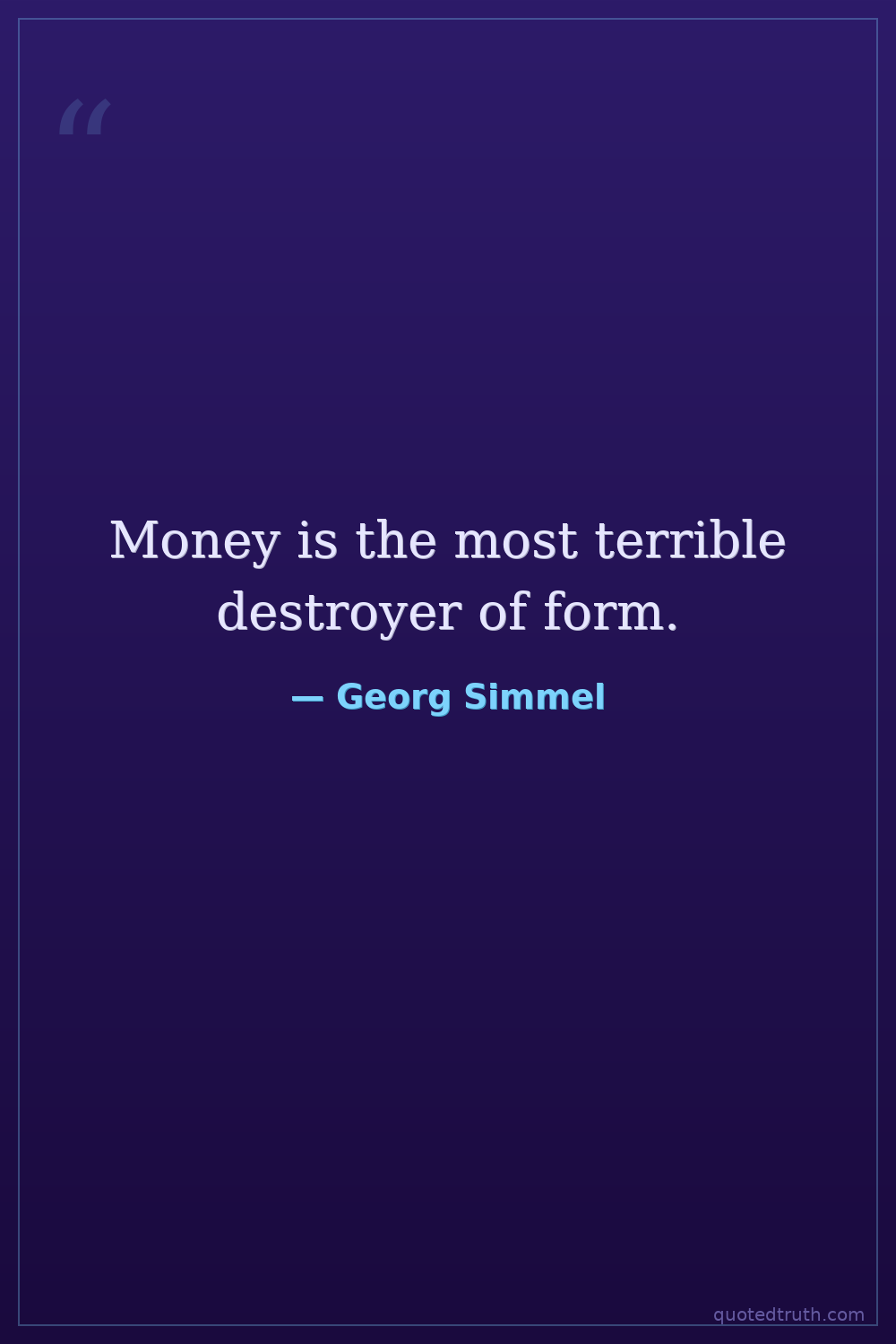 Money is the most terrible destroyer of form.