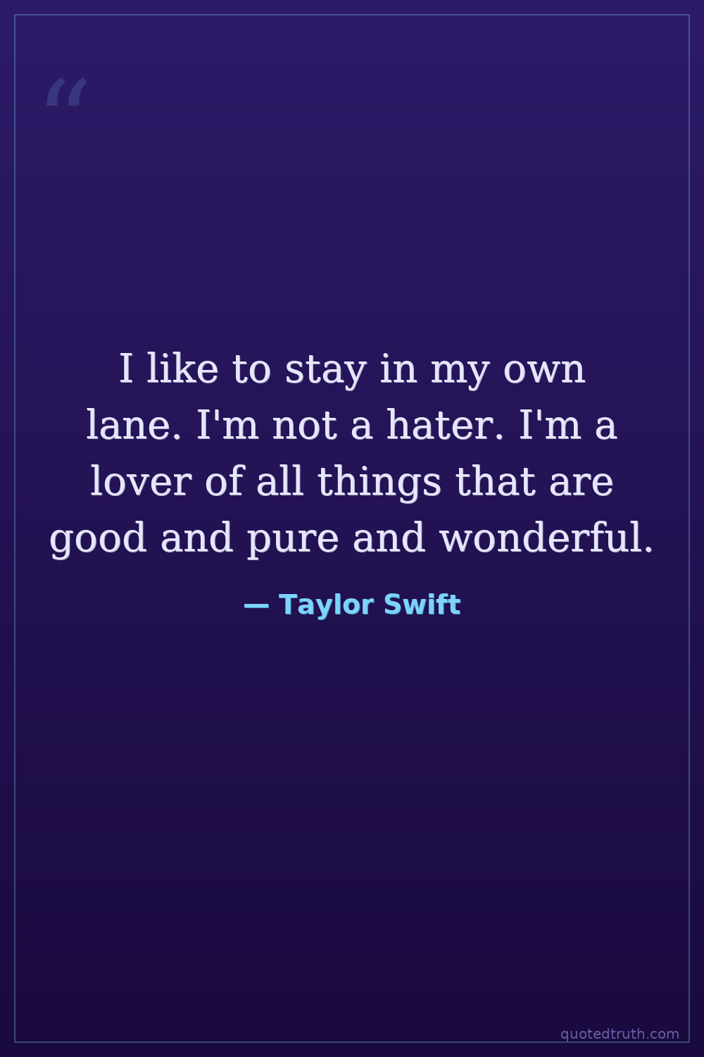 I like to stay in my own lane. I'm not a hater. I'm a lover of all things that are good and pure and wonderful.