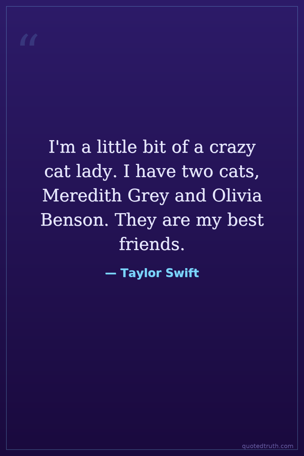 I'm a little bit of a crazy cat lady. I have two cats, Meredith Grey and Olivia Benson. They are my best friends.