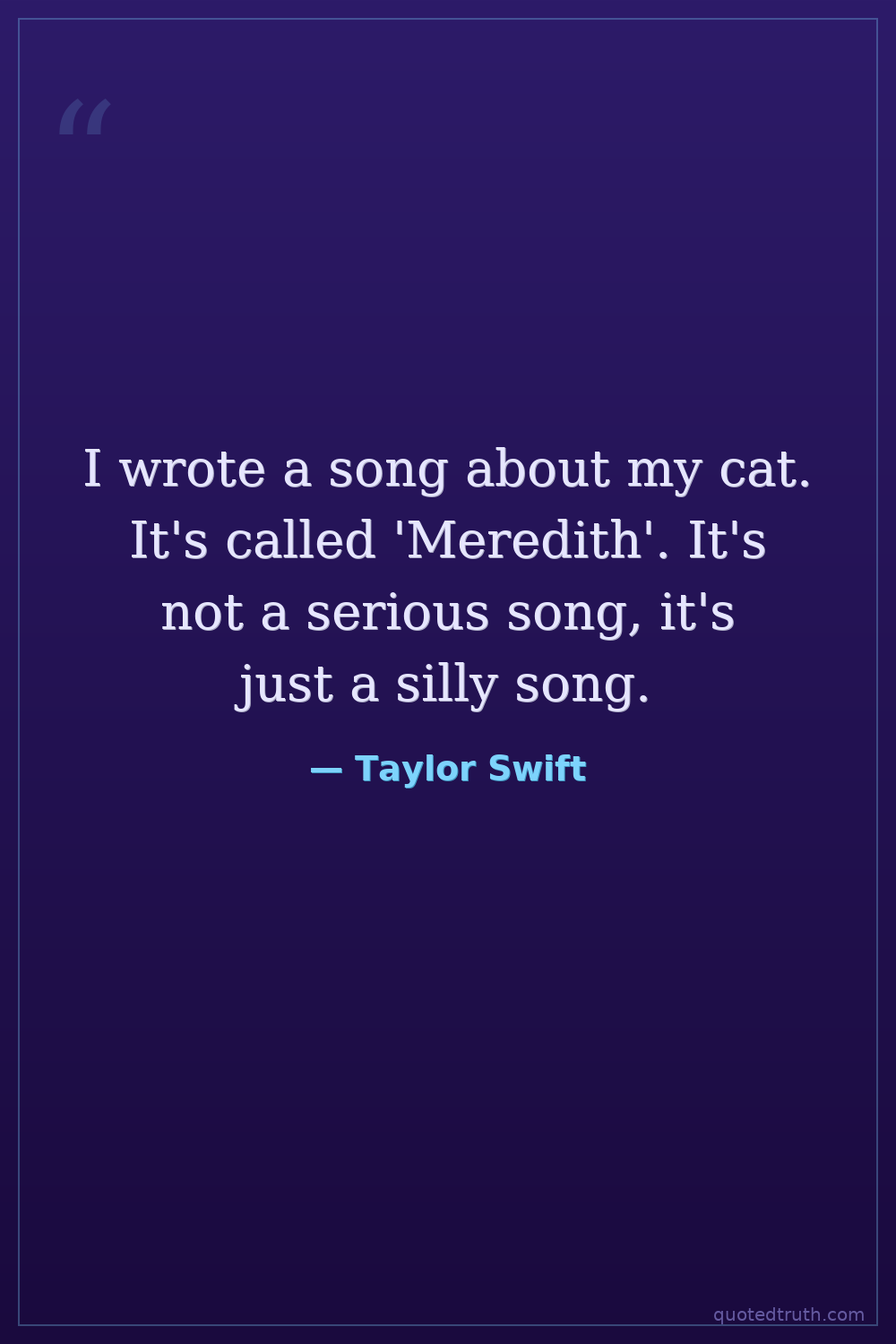 I wrote a song about my cat. It's called 'Meredith'. It's not a serious song, it's just a silly song.