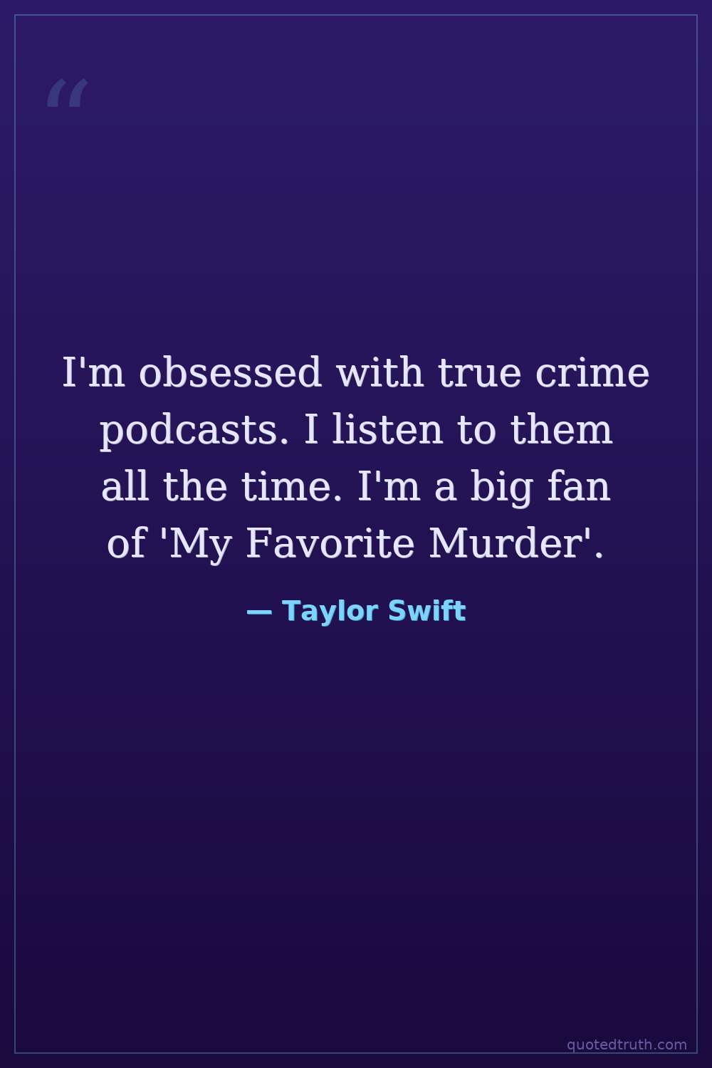 I'm obsessed with true crime podcasts. I listen to them all the time. I'm a big fan of 'My Favorite Murder'.