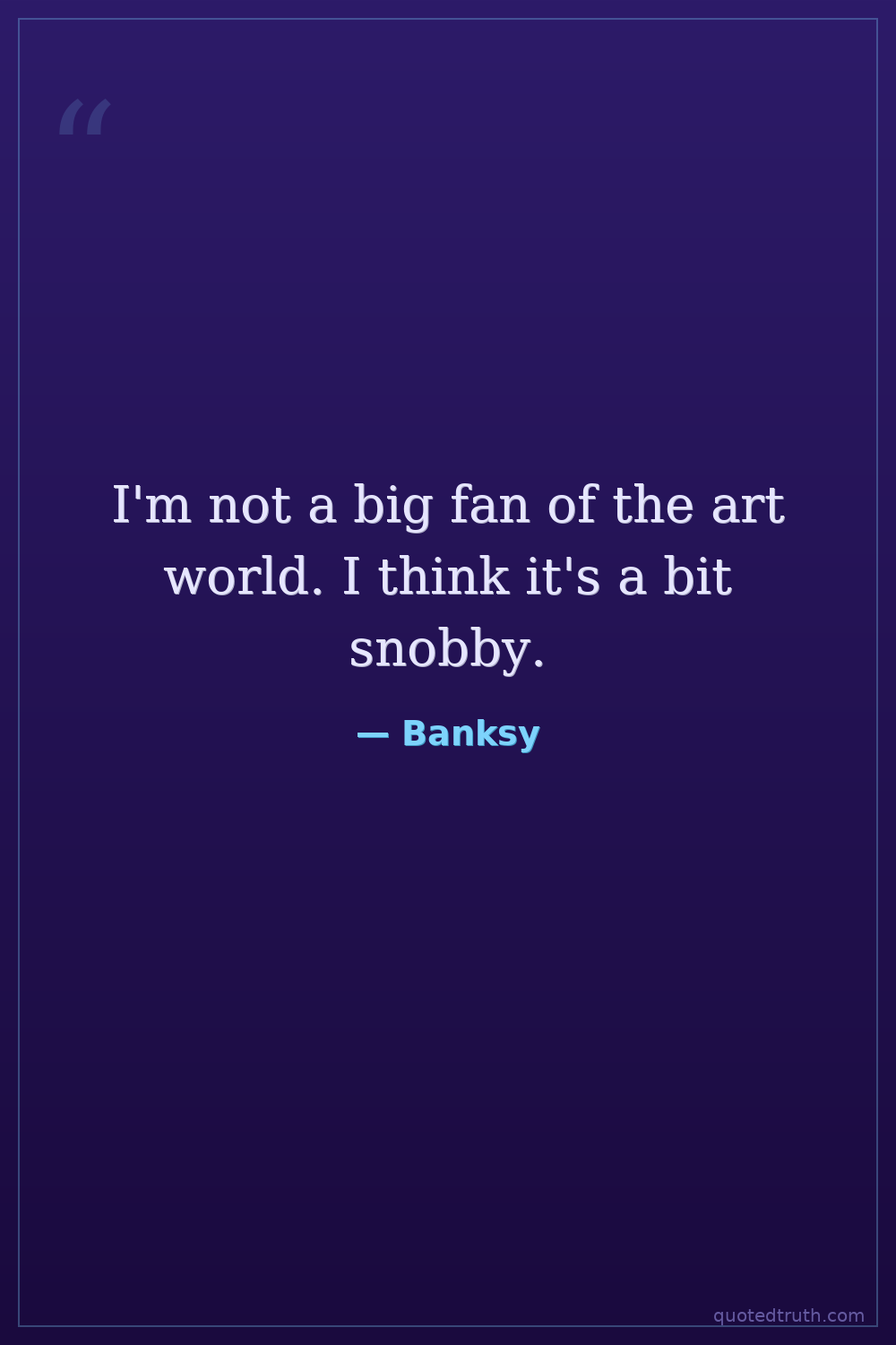 I'm not a big fan of the art world. I think it's a bit snobby.