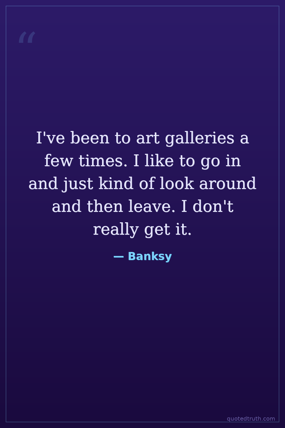 I've been to art galleries a few times. I like to go in and just kind of look around and then leave. I don't really get it.