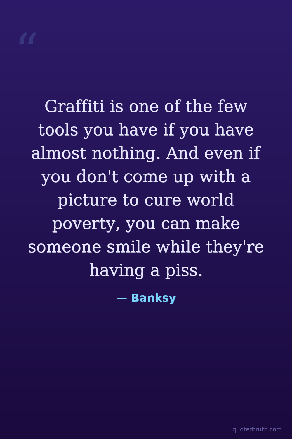 Graffiti is one of the few tools you have if you have almost nothing. And even if you don't come up with a picture to cure world poverty, you can make someone smile while they're having a piss.
