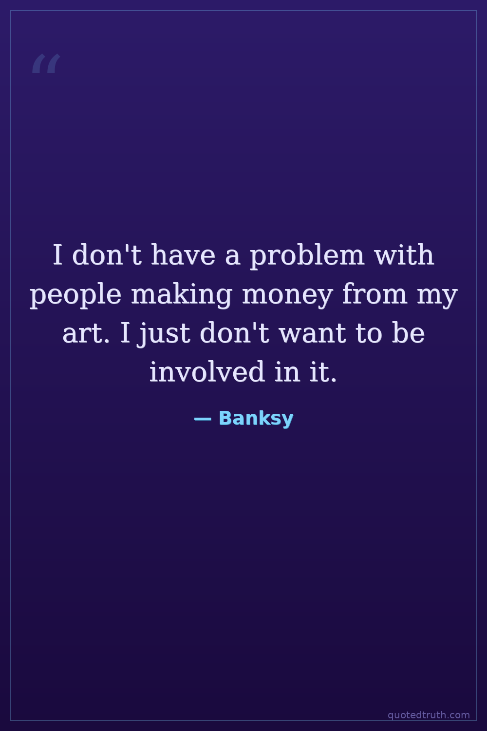 I don't have a problem with people making money from my art. I just don't want to be involved in it.