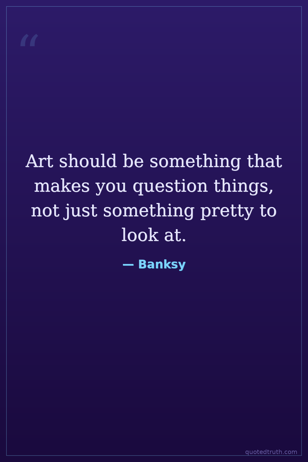 Art should be something that makes you question things, not just something pretty to look at.