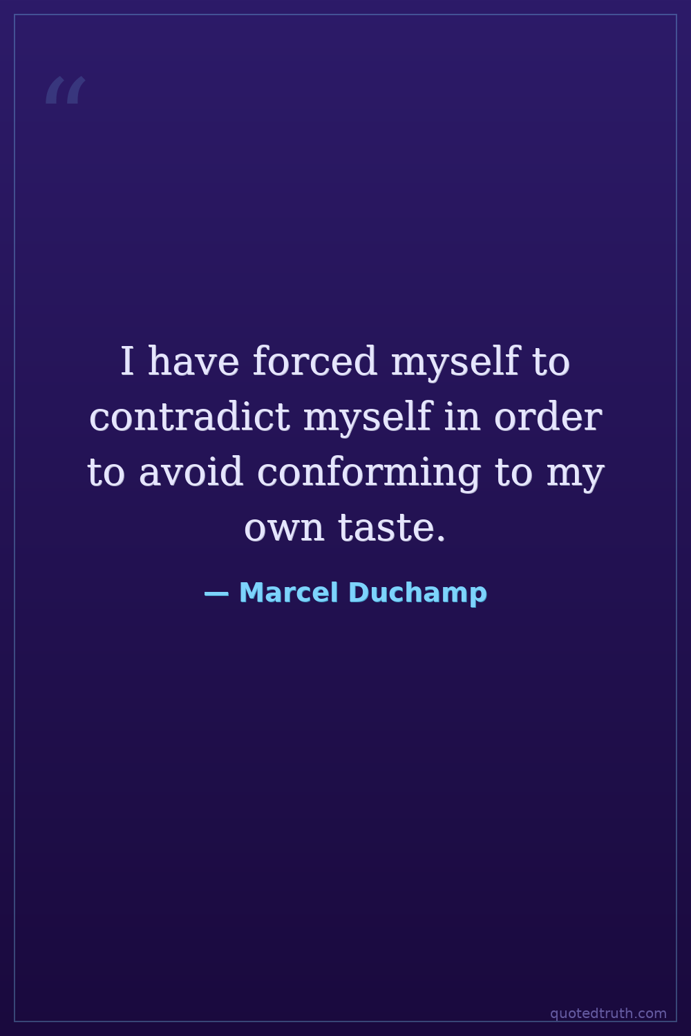 I have forced myself to contradict myself in order to avoid conforming to my own taste.