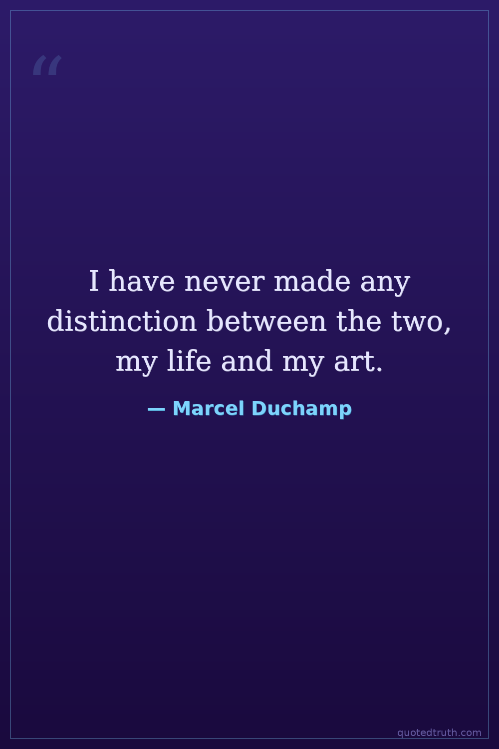 I have never made any distinction between the two, my life and my art.