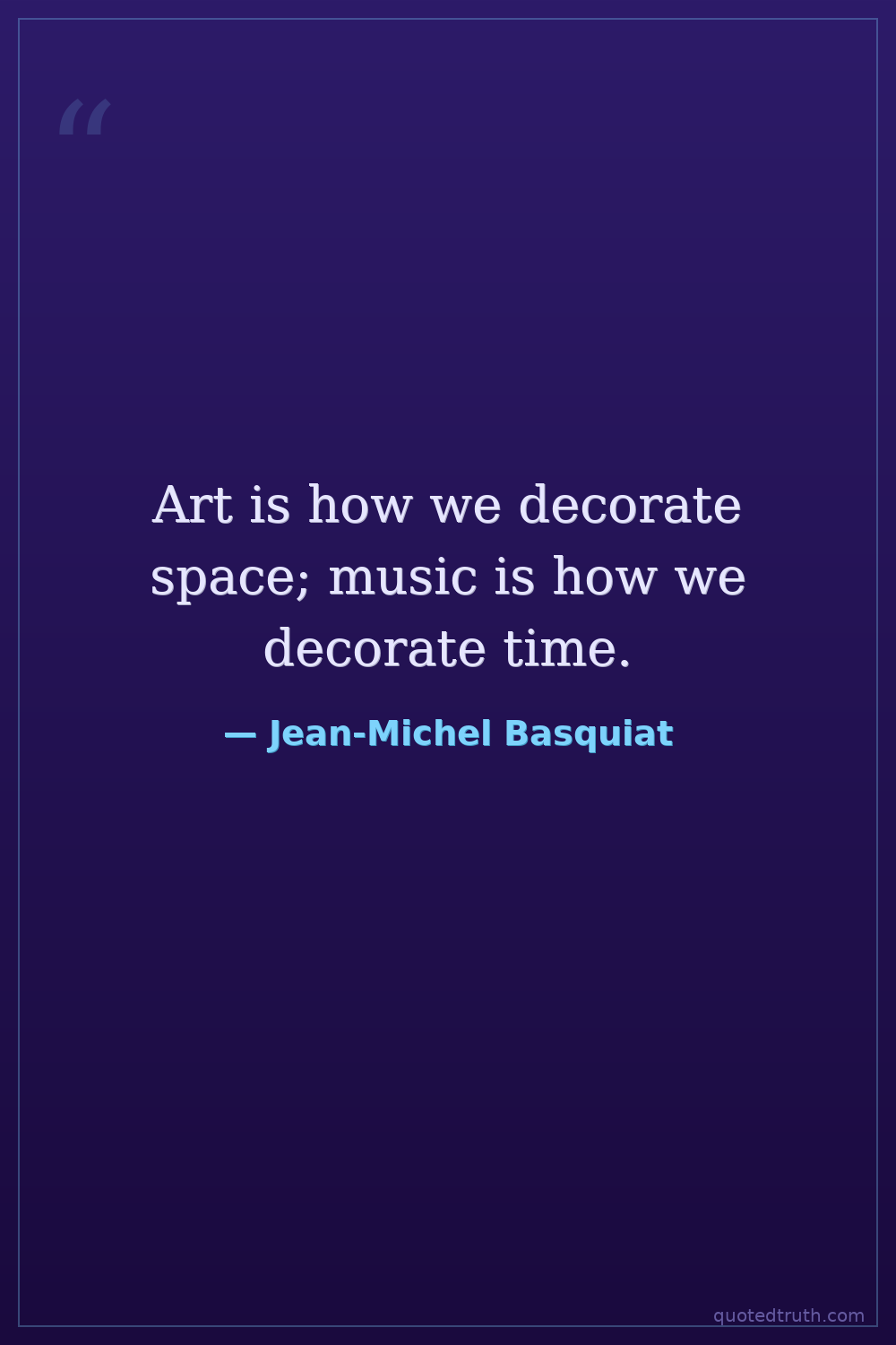 Art is how we decorate space; music is how we decorate time.