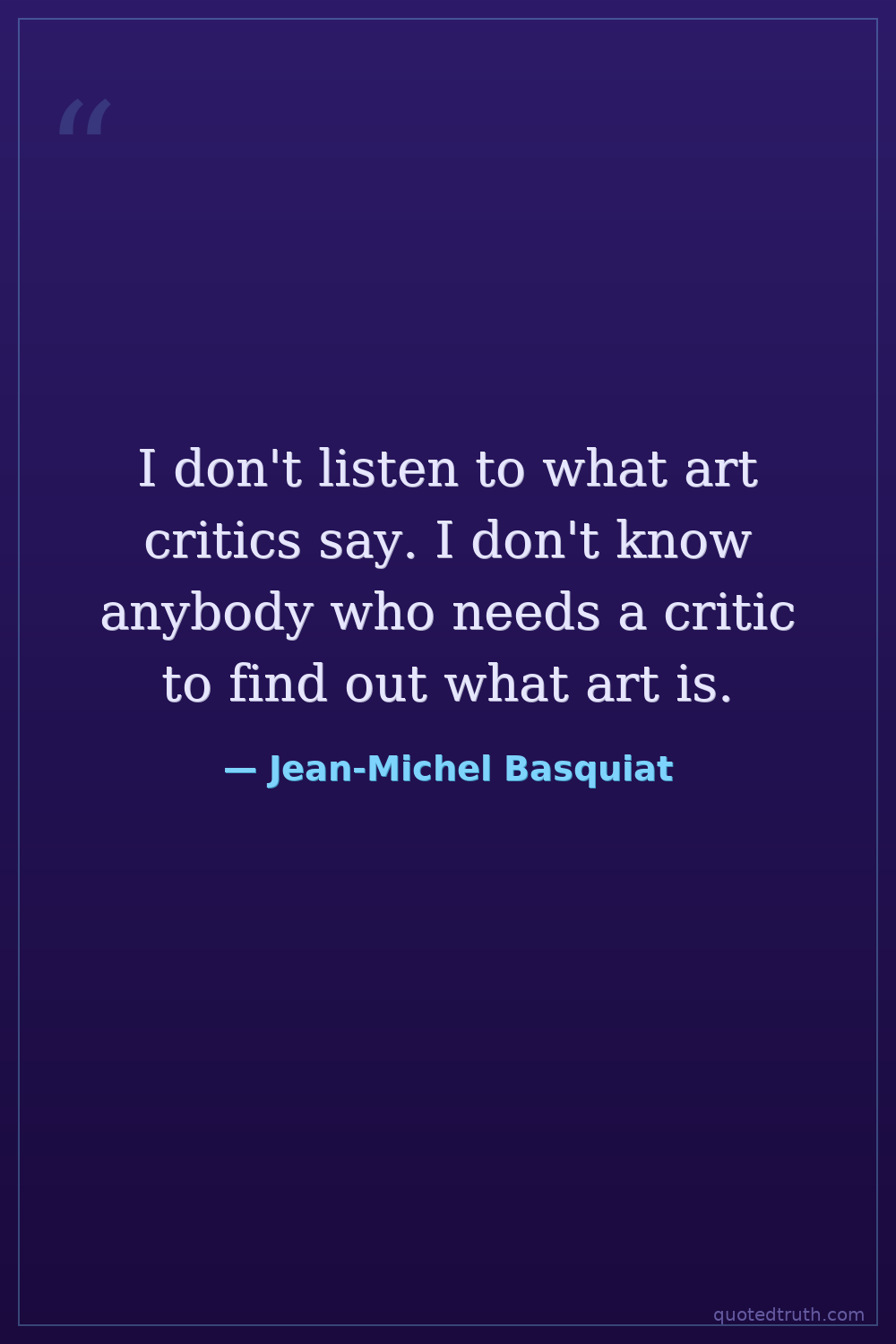 I don't listen to what art critics say. I don't know anybody who needs a critic to find out what art is.