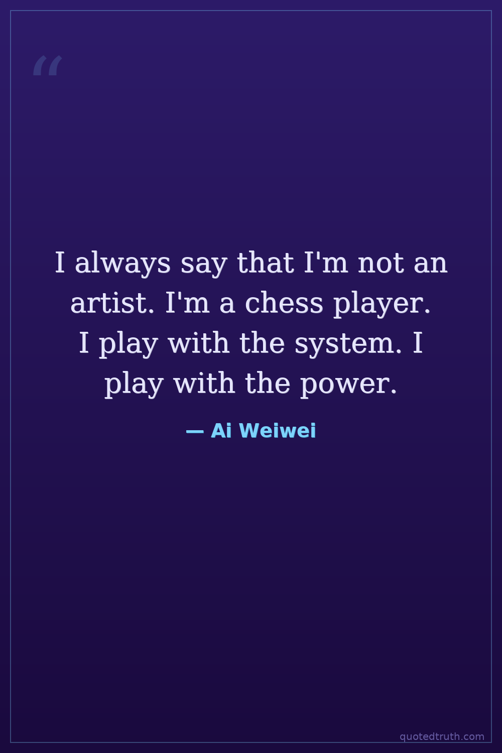 I always say that I'm not an artist. I'm a chess player. I play with the system. I play with the power.