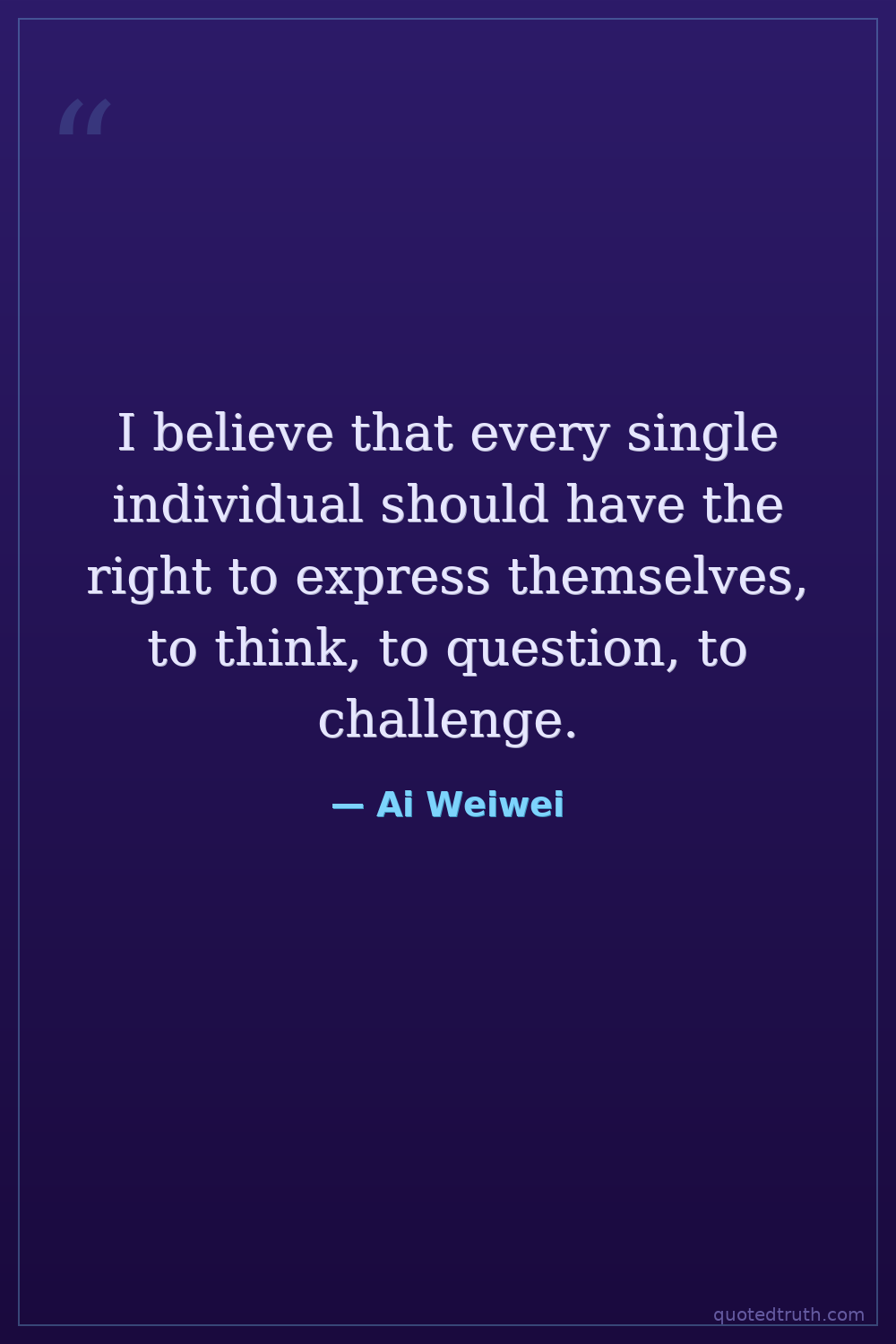 I believe that every single individual should have the right to express themselves, to think, to question, to challenge.