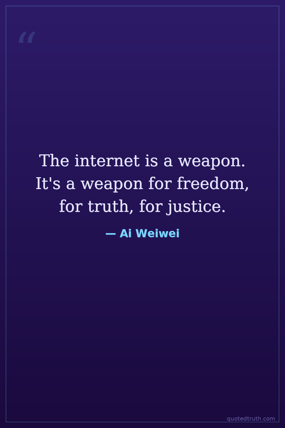 The internet is a weapon. It's a weapon for freedom, for truth, for justice.